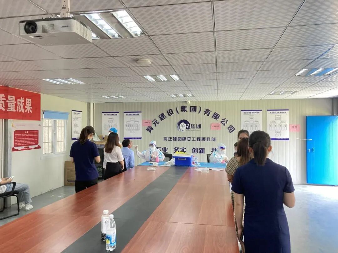 至此,臻园项目部管理人员含劳务人员共计500多人,全部完成1次核酸检测。项目部承担了所有费用,检测结果显示受检人员全部为阴性。